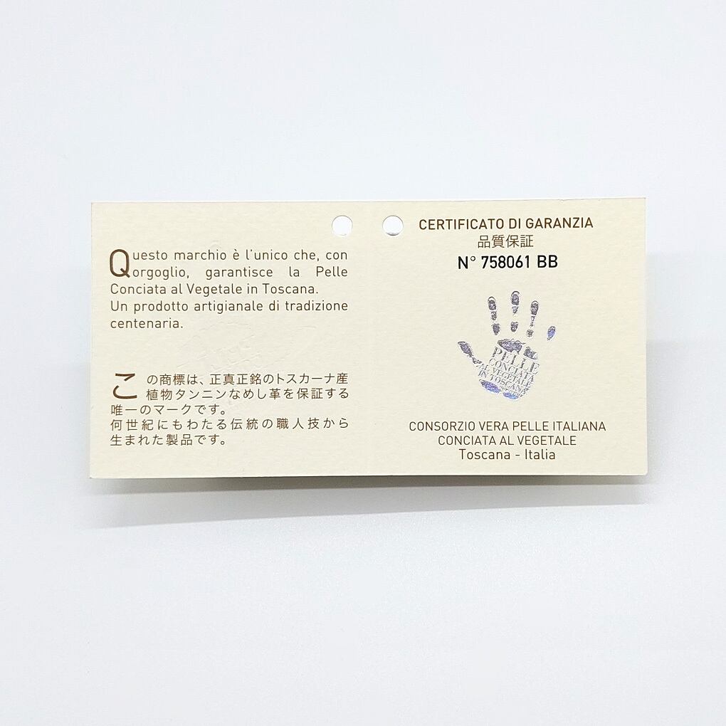 ※イタリアンレザーを使用したアイテムに関しては、トスカーナ産の品質を保証するカードが付属します