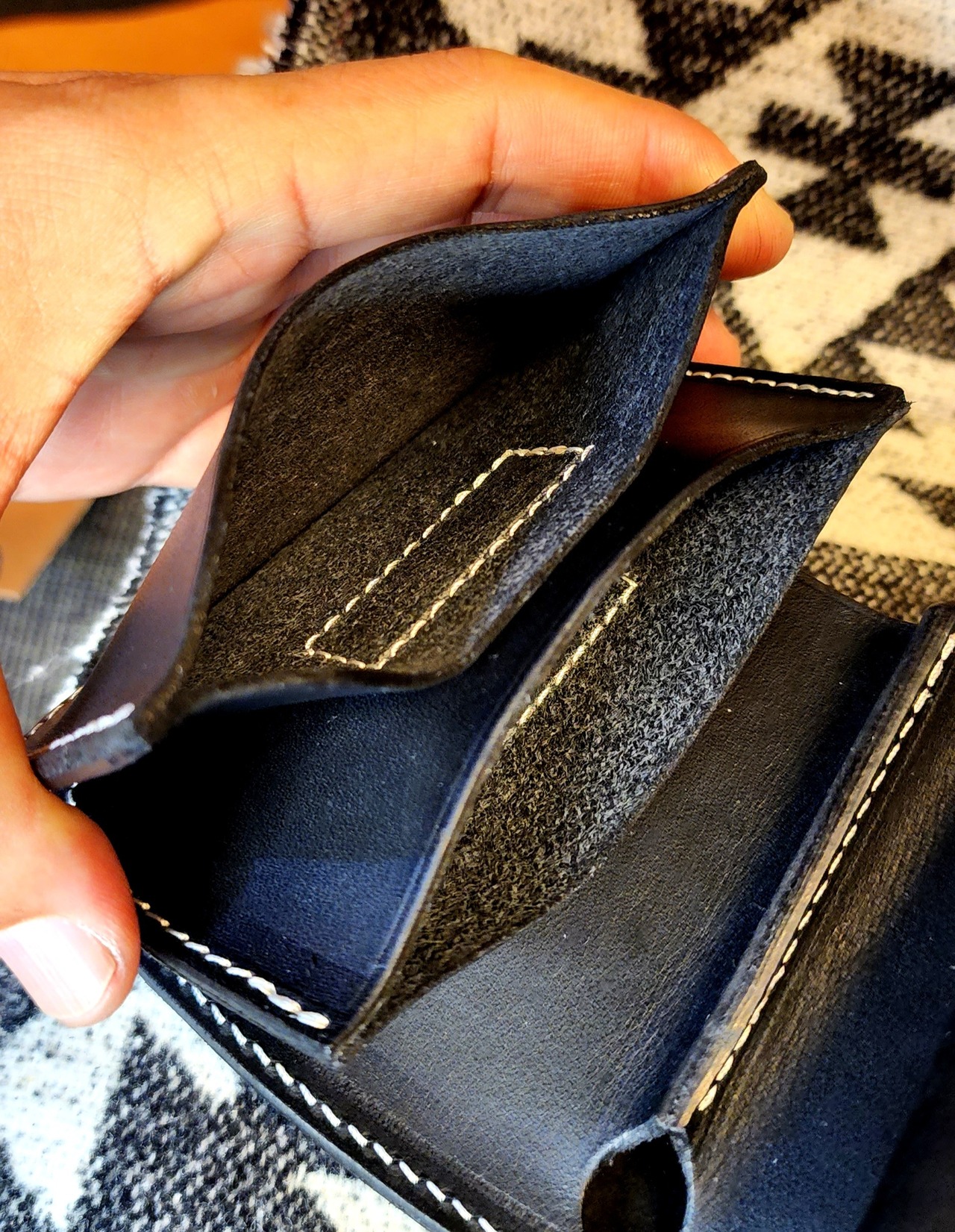 表、中ともにイタリアンオイルレザーのエルバマットを採用。しっとりとしたマット感、オイルレザーの重み、間違いなく手に持った瞬間に、所有欲を満たす質感です。一人の職人が1つ1つ仕立てるので、在庫有りきりの販売となります。
