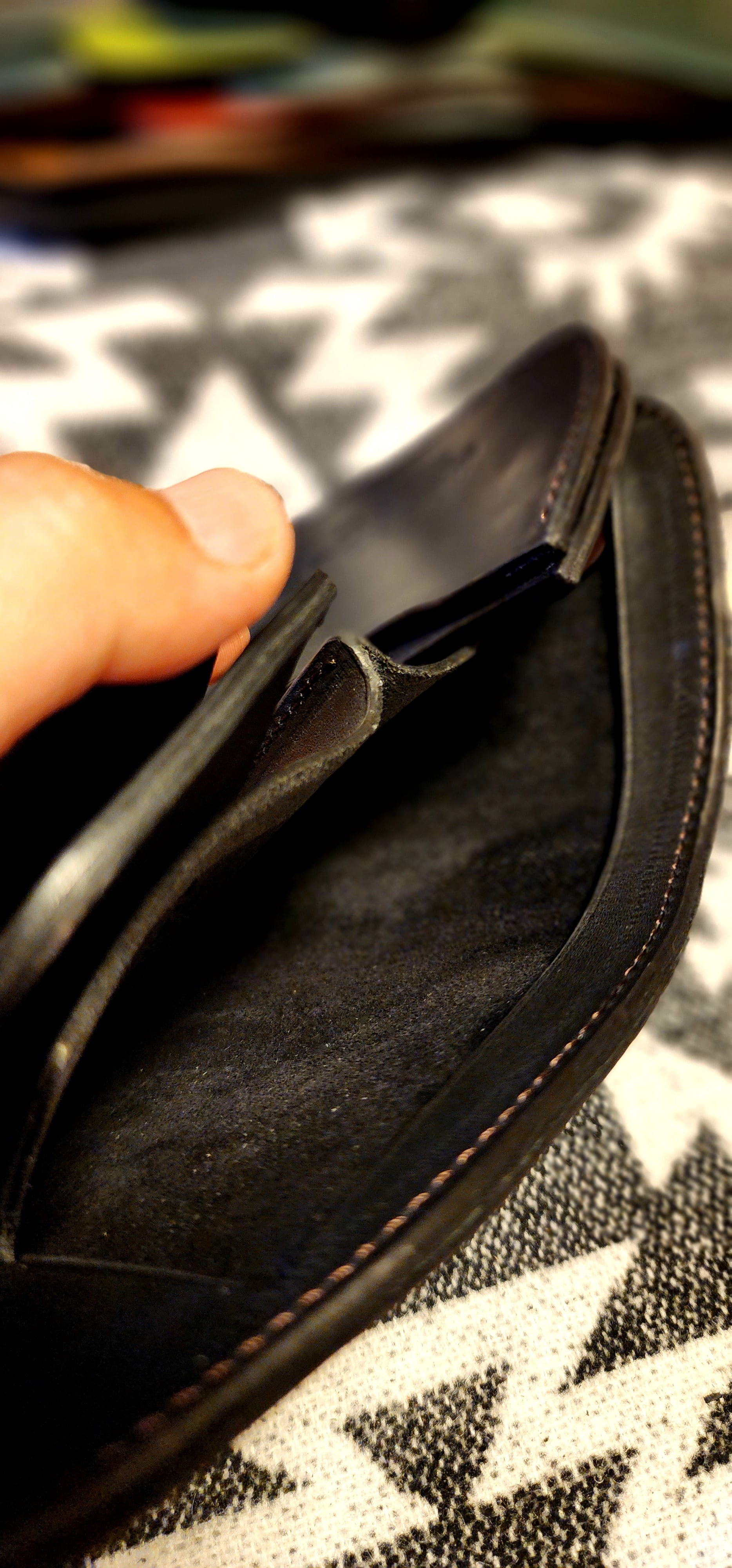 SSW.コードバン仕様スペシャルエディション。表革とコインケース蓋部分にダークブラックのコードバン。裏貼りにはピッグスキン(ブラック)を採用。