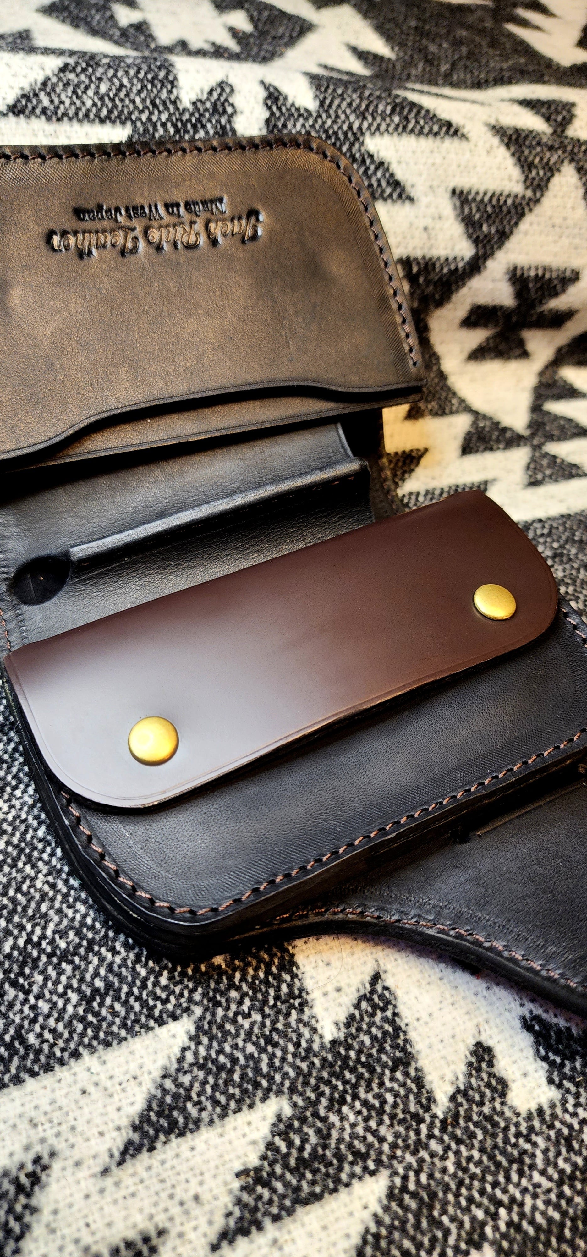 SSW.コードバン仕様スペシャルエディション。表革とコインケース蓋部分にダークブラックのコードバン。裏貼りにはピッグスキン(ブラック)を採用。
