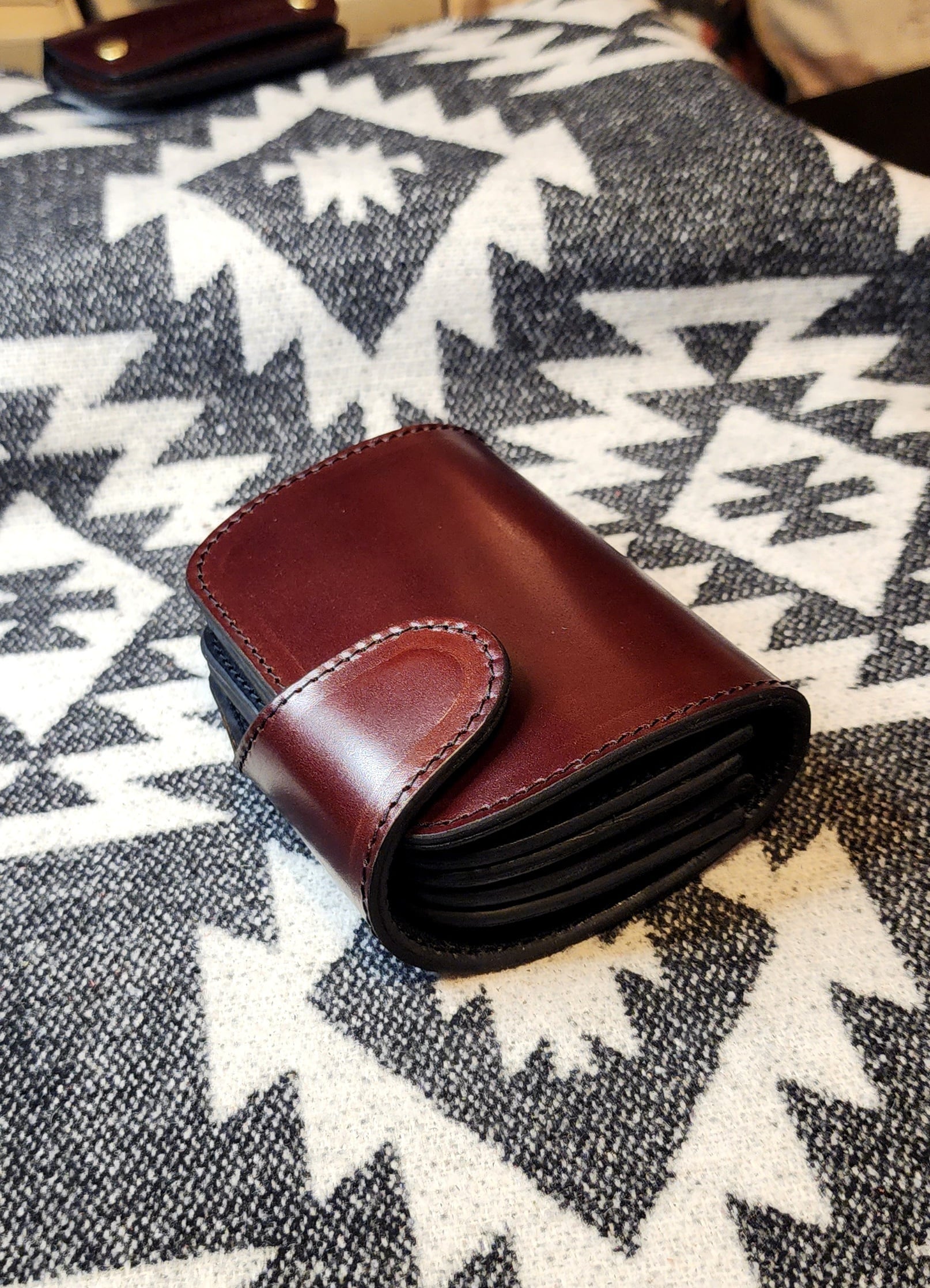 表革とコインケース蓋部分に、バーガンディカラーの極上コードバンを採用。